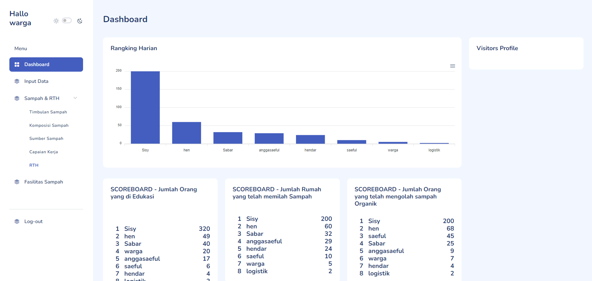 Developing a waste management system based on Laravel and MySQL with two roles: residents and admin. Admins from each PKK branch register residents in their respective areas, while residents can log in to input the collected waste data along with proof. Admins can display the collected waste data and rank residents based on the amount of waste collected. This system supports efficient waste management efforts and encourages resident participation.